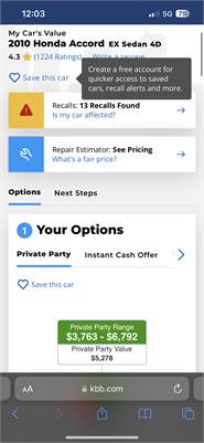 2010 HONDA ACCORD EX 6 Cylinder (V6). Black. 163k miles. $5200. Fo...