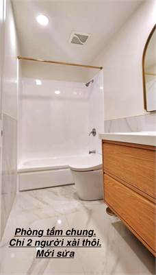 1 phòng. Nữ dưới 40t. Cho nấu ăn. Bao điện nước, giặt sấy, máy lạnh. Phòng & nhà tắm đẹp, mới sửa hoàn toàn. Khu an toàn. Lối đi chung, nhà tắm chỉ xài với 1-2 người nữa thôi. $700 thương lượng. L/L: 714-391-3946