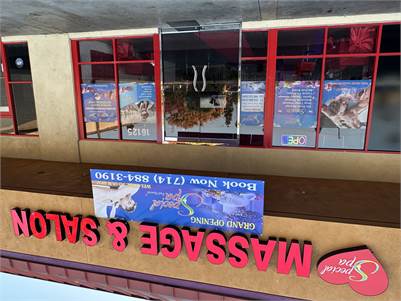 Tiệm massage rộng lớn và sạch đẹp, có làm thêm tóc và facial, cần thợ có bằng, Tiệm cho mướn phòng và Station tóc. Hiện tại thợ được hùn vào tiệm làm chủ. Call: 949-844-7471.