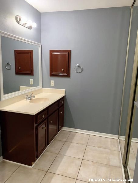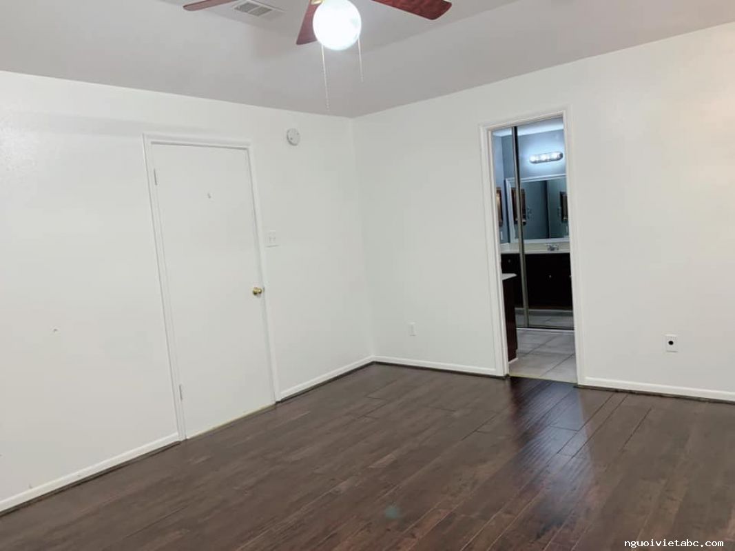 Phòng Master bedroom trống cần cho mướn, có walk-in closet. Phòng rất rộng rãi ( 300 SqFt ) và mát mẻ, nhà có patio vườn trái cây nên iên tĩnh, khu an toàn và xung quanh nhà có cameras. Vợ chồng trẻ đi làm suốt, ưu tiên mấy em du học sinh/ độc thân. Nhà ở 77082, giá mướn $450 bao tất cả và nấu ăn thoải mái.