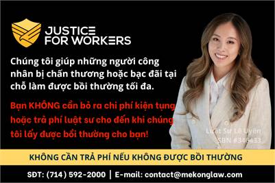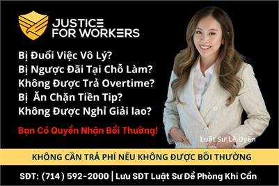 Luật Sư LÊ UYÊN 714-592-2000 Chuyên lấy bồi thường chấn thương lao động và vi phạm luật lao động (đuổi việc vô lý, ăn chặn tip, chủ không trả minimum wage, overtime).